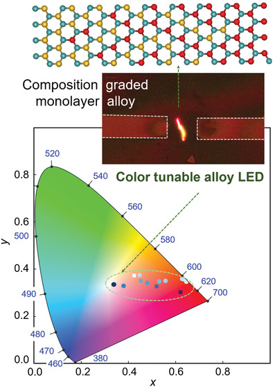 DOI❯Continuous color-tunable light-emitting devices based on compositionally graded monolayer transition metal dichalcogenide alloys